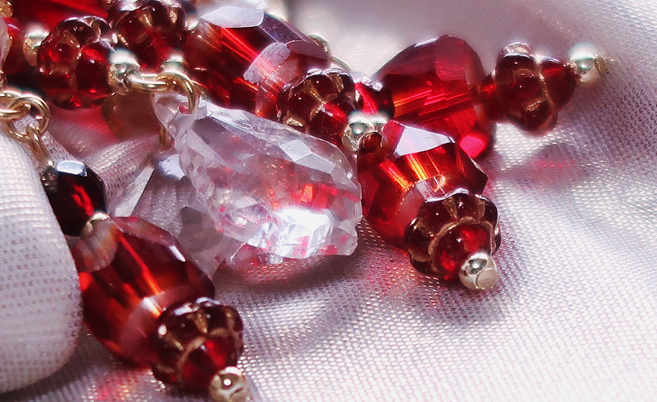 個人的には、ビーズの反射などが見ていてとても心地よいネックレスなので、是非光に透かして見てください。