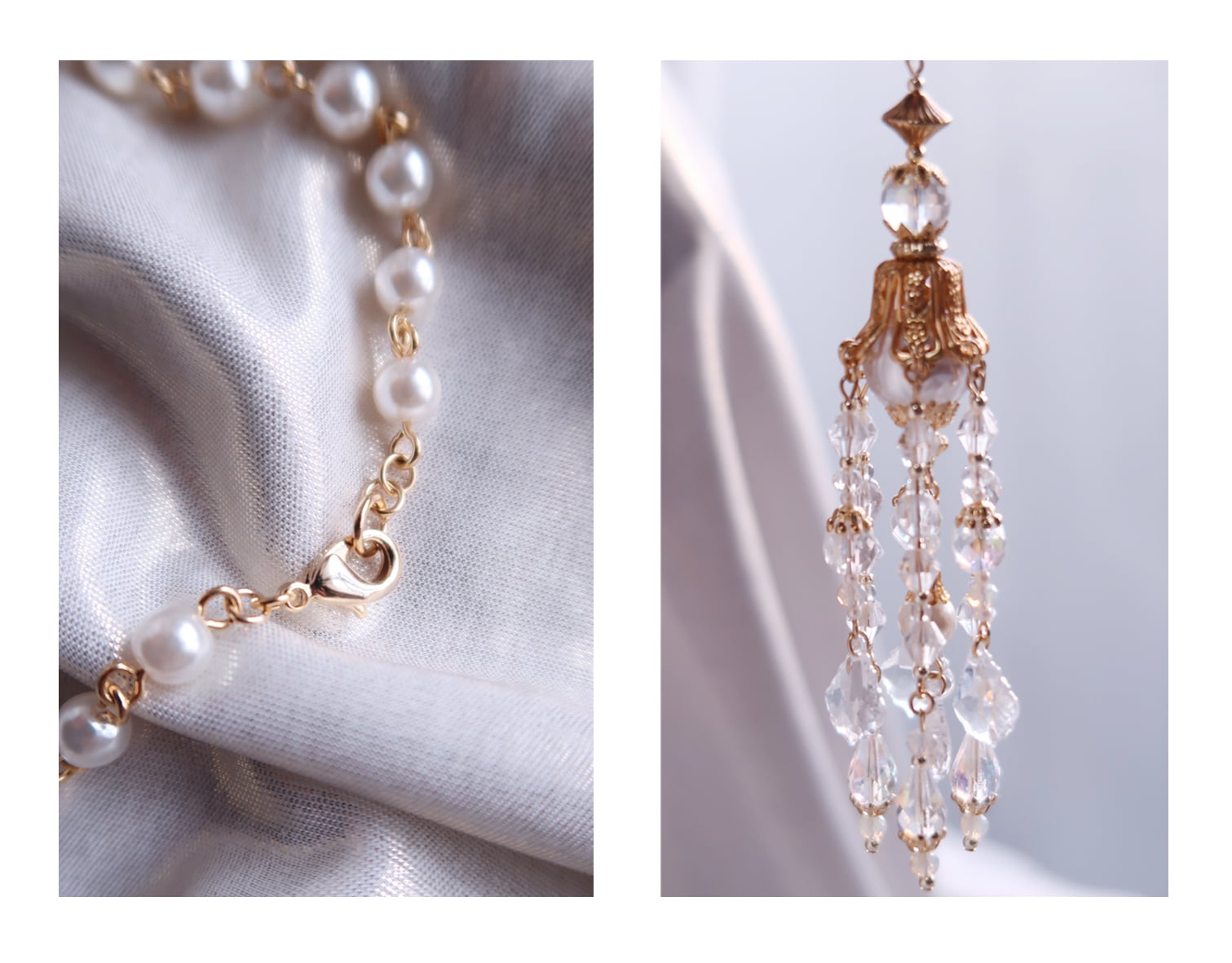 美しいビーズ達がシャンデリアのようにゆらゆらと光を反射します。