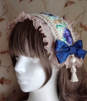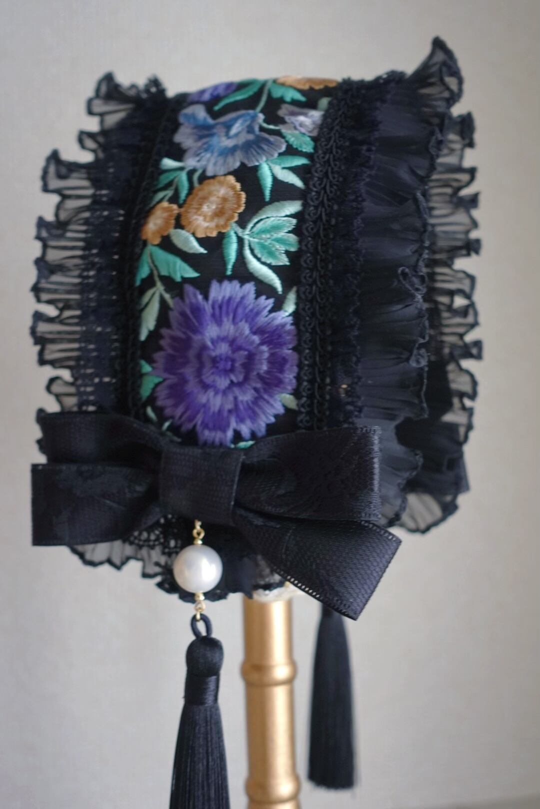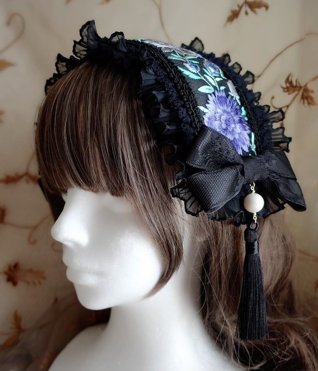 美しい刺繍ブレードを使用したヘッドドレスです。青いお花を中心に見事な刺繍が施されております。