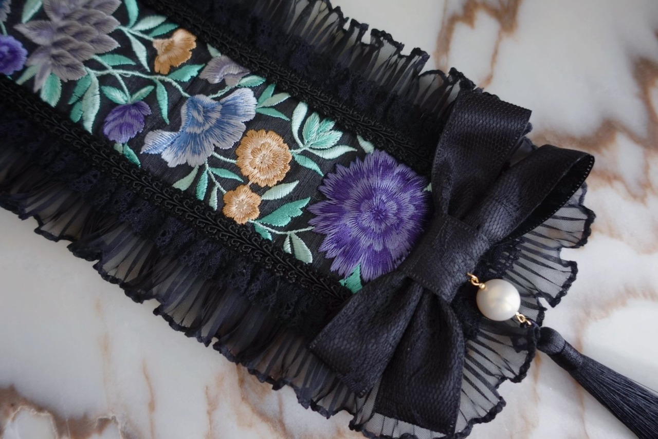ベージュとブラックで使用しているレースやタッセルなど素材が少しずつ違います。