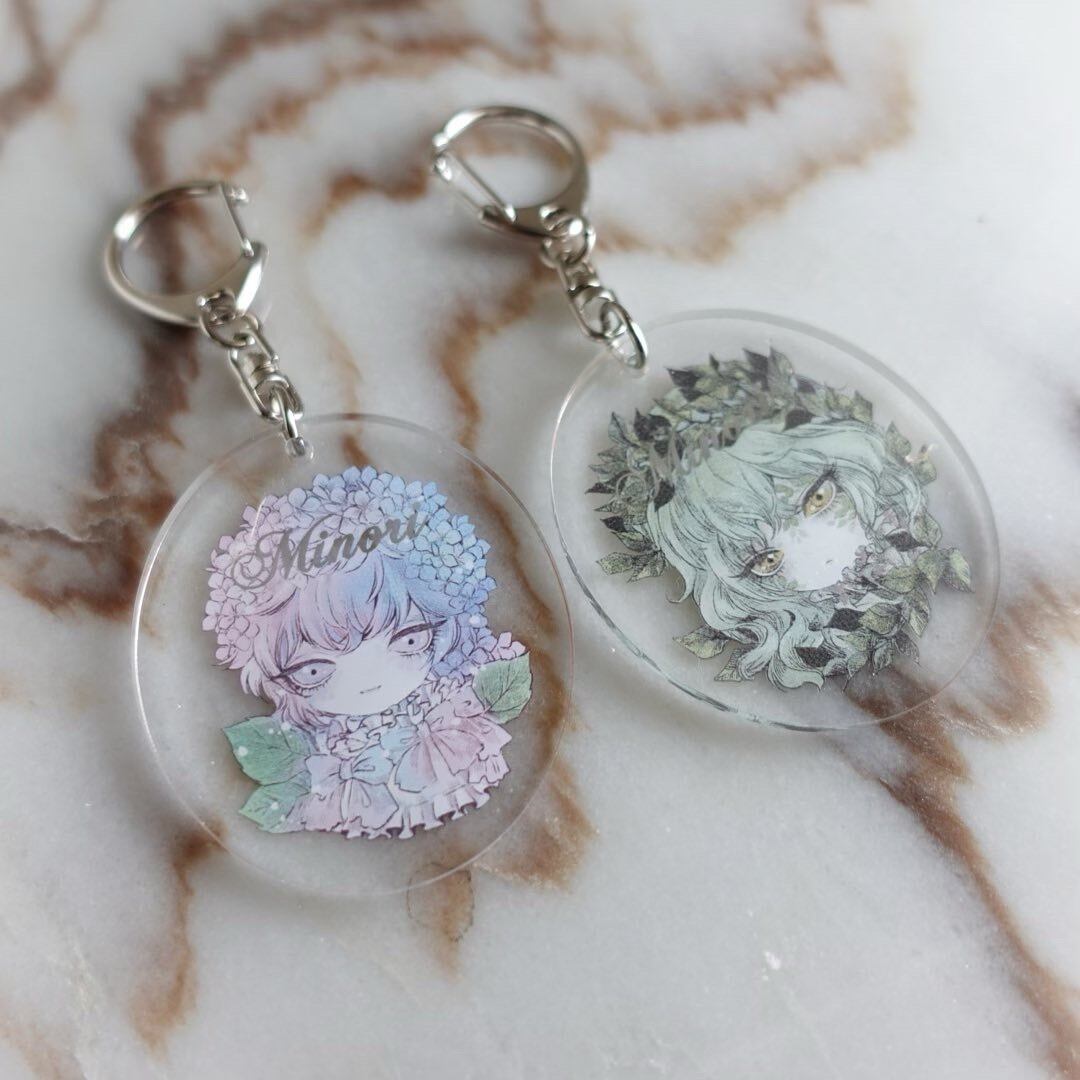 それぞれの作品の際のminoriをキャラクター化しアクリルキーホルダーにしてみました。